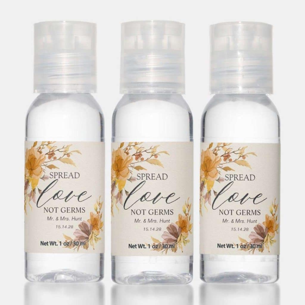 Seize the opportunity to make your wedding favors fun and functional! Personalized face masks are a creative and useful little gift for guests. Consider masks in your wedding colors, ones tastefully embroidered with your initials, or perhaps masks adorned with a clever saying like “spread love, not germs.” Small bottles of hand sanitizer would also be a perfect choice, especially with a custom-designed label.
