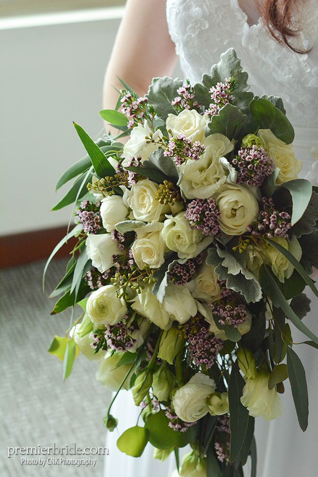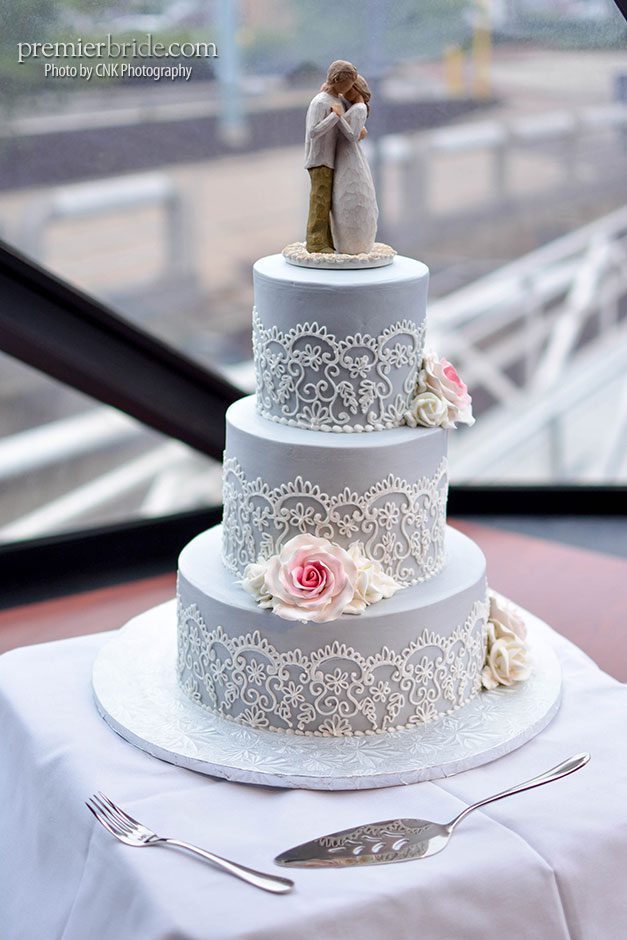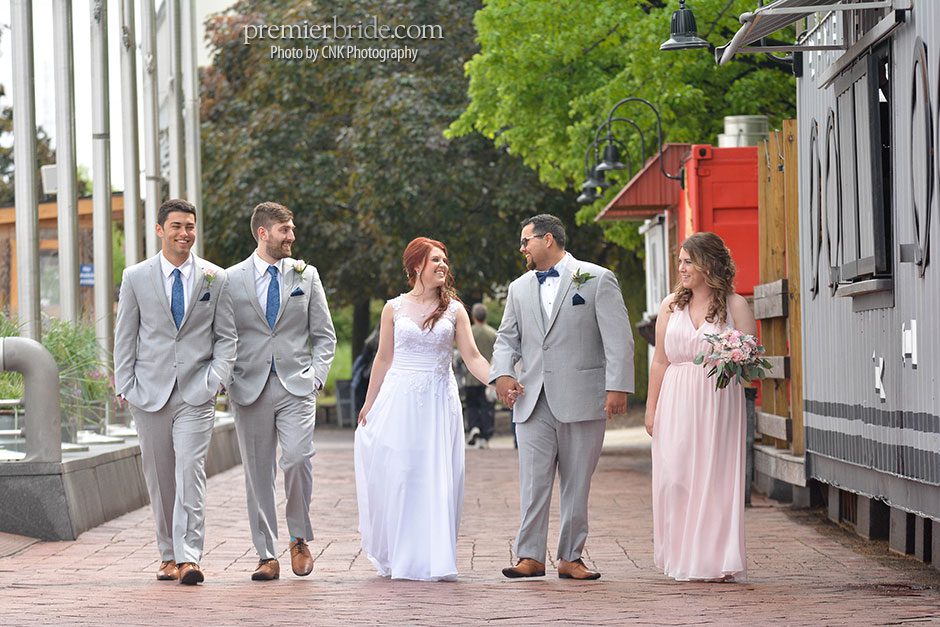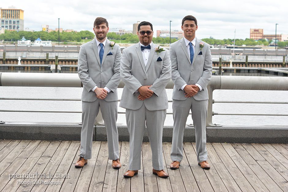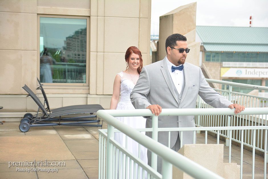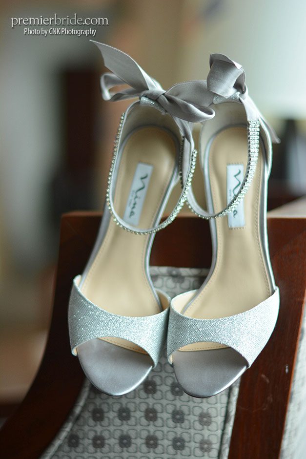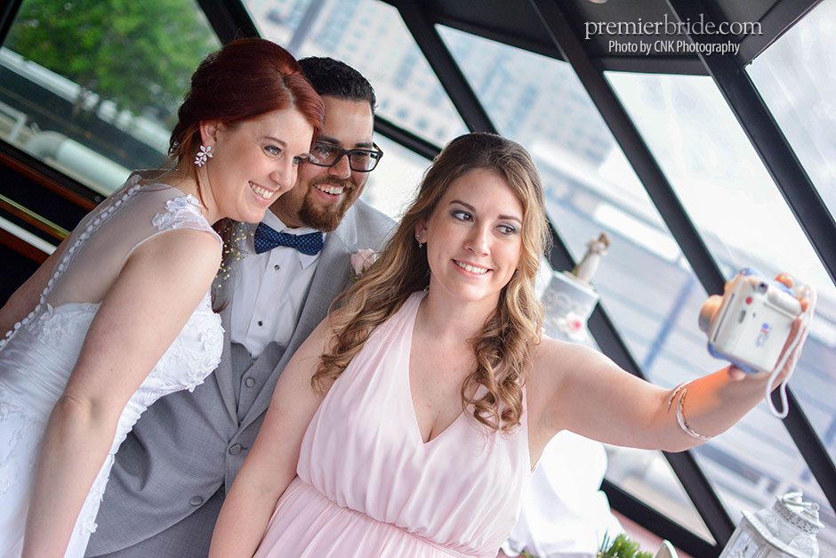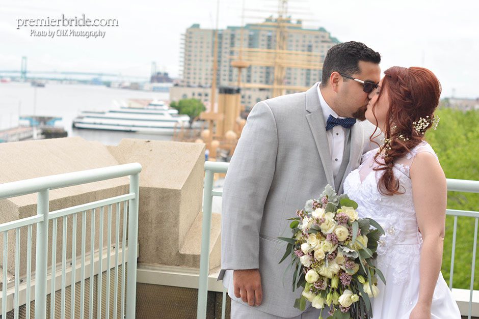 The day of the wedding, Heather and her bridesmaids enjoyed mimosas in the gorgeous rooms of the Hilton Penn’s Landing while they prepared for the wedding with the help of their makeup artist and stylist from Bella Angel. Tagging along with them was their photographer, Cole of CNK Photography. “He followed us throughout the entire day, narrating our memories in pictures. He made sure to snap our beautiful fresh flowers which brought life and color to the setting and also made sure to grab some pictures of our cake. It was everything I could hope and dream!” says Heather.