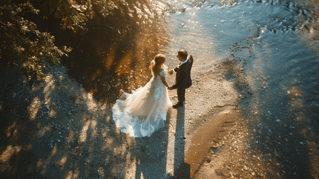 Drone/Aerial Photography: This style utilizes unmanned aerial vehicles (drones) to capture stunning aerial shots of the wedding venue, ceremony, and surrounding landscapes. Drone photography provides a unique perspective and allows couples to showcase the beauty of their wedding location from above.