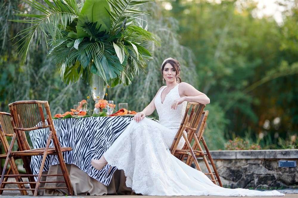 Wild in Love was shot at the Jacksonville Zoo and Gardens. Dan Harris Photoart was the fashion photographer, English Imagery was the primary decor photographer and Christine Austin Photography was the support. Our other vendors included; ABC Wine & Spirits, All About Events, All About You Staffing, All You Can Sweet, Bridals & More, Calligraphy by Cami, Event’s Decor and More, Florida Wedding Supply, Jacksonville Flower Market, Michaels Formals, Nic Studios, Rachel Ann Bridal, Rosenblumes, Simply Weddings & Florals by Amanda, Soul Sister Designs, The Event Pros, and Updos for I Dos.